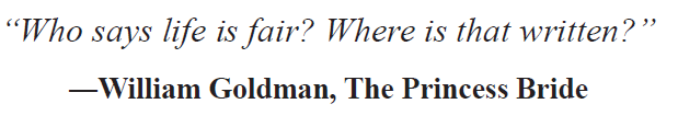 You will find this “F” word on the lips of those living in mediocrity, looking for an excuse for why they don’t reach higher. Why they got a bad rap or a bad deal. Why someone didn’t treat them well or why they lost a race. They make statements like, “They won because the rules were not fair” or “I didn’t do well because the rules were unfairly stacked against me.” Excuses for life like, “Today you don’t get a fair deal if you’re not a (fill in your blank).” Justifications often are stated as, “I was not treated fairly, so I now have the moral right to .” So you act badly with perceived moral high ground because fair play is the new moral standard.