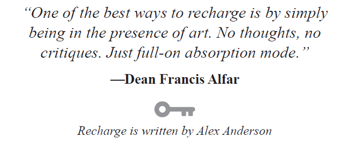 If we don’t practice proper recharging, then we may find ourselves burning out. I’ve done that in the past, and that’s as bad as a root canal. No doubt we can resort to our default setting and pay the price if we don’t do something different. That usually does not end well. So stop…plug into what charges you, rinse, and repeat. Then, maybe, you can actually recharge at something…you know—to charge at something again.