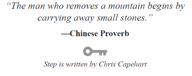 I love this statement. It sums up a lot of what the word step means to me. It’s a powerful principle, yet so simple to understand. Typically, in those moments of being paralyzed by the overwhelming number of tasks we believe it will take to accomplish our goals, we simply can’t move, or we can’t decide how to move.